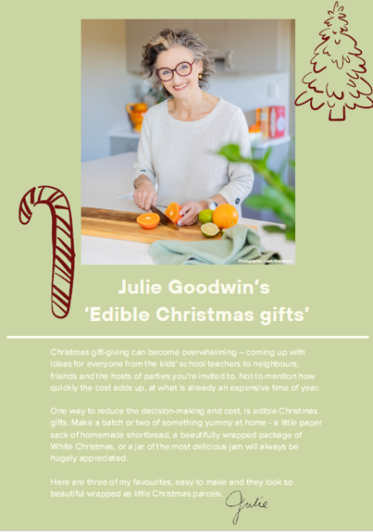 Enjoy your free copy of Julie Goodwin’s “Edible Christmas gifts”!